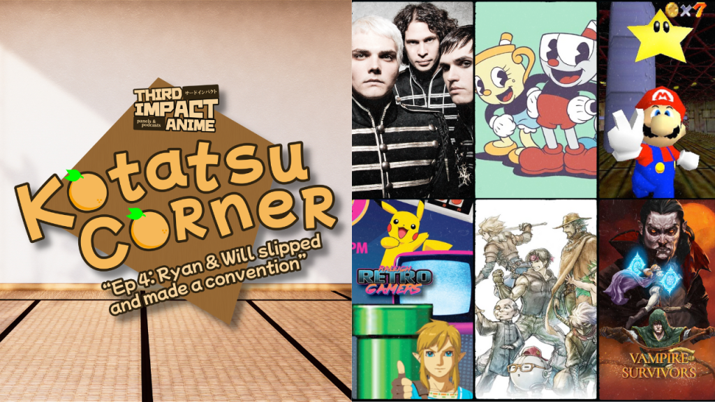 Kotatsu Corner is our side-show where we talk about non-anime related crap that we just have to get out of our system. On this one, con-certs, con-ventions, and the con-fluence of other topics. Topics include Cuphead, My Chemical Romance, Raleigh Gamer and Geek Expo, Super Mario 64, and more.